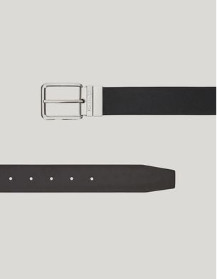 Reversible belt in black grained and smooth calfskin